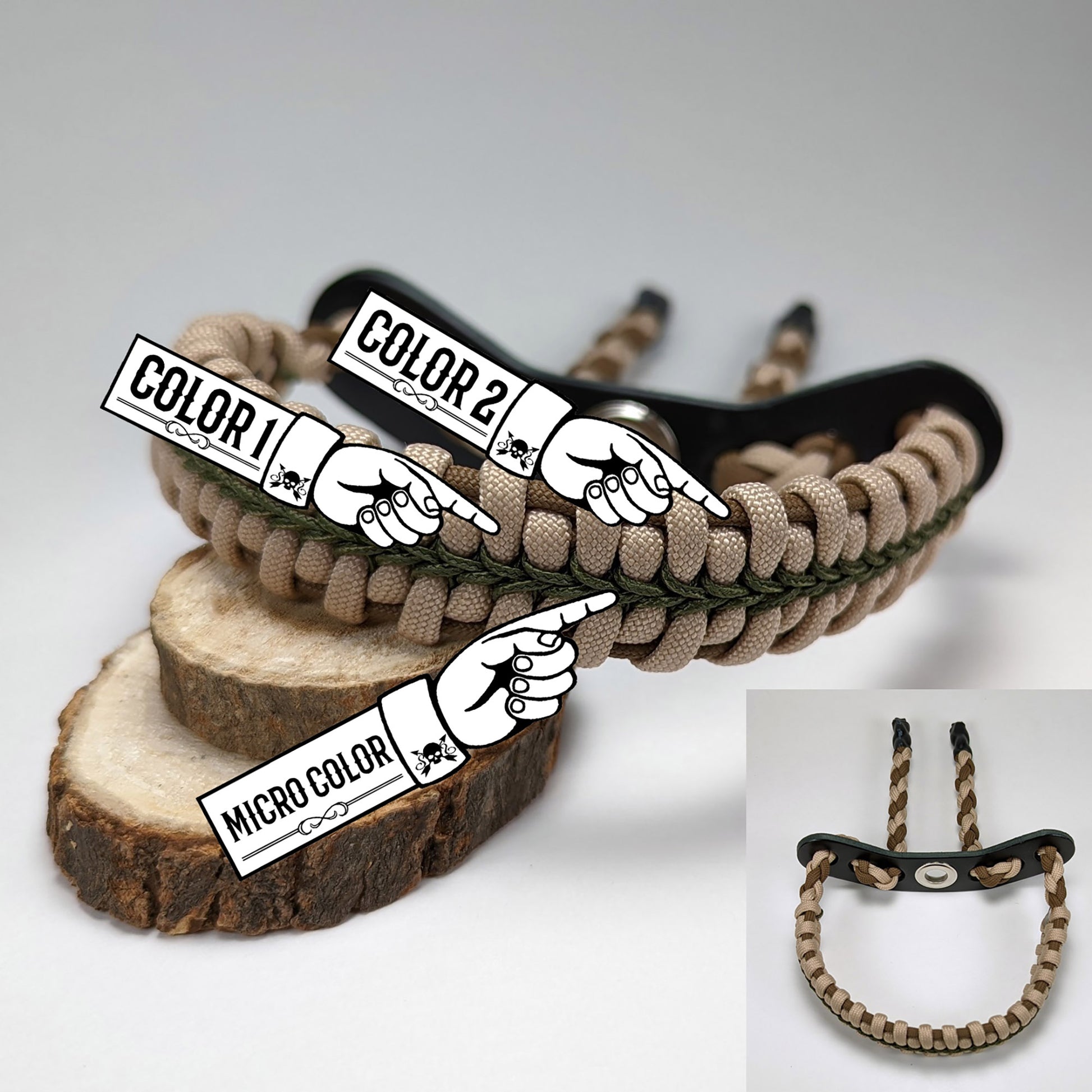 Custom bow sling made with 550 paracord and includes a bow sling yoke bracket mount. I have included photos of my available colors that you can enter in as your choices in the corresponding places. If you have any questions, please feel free to message me.
